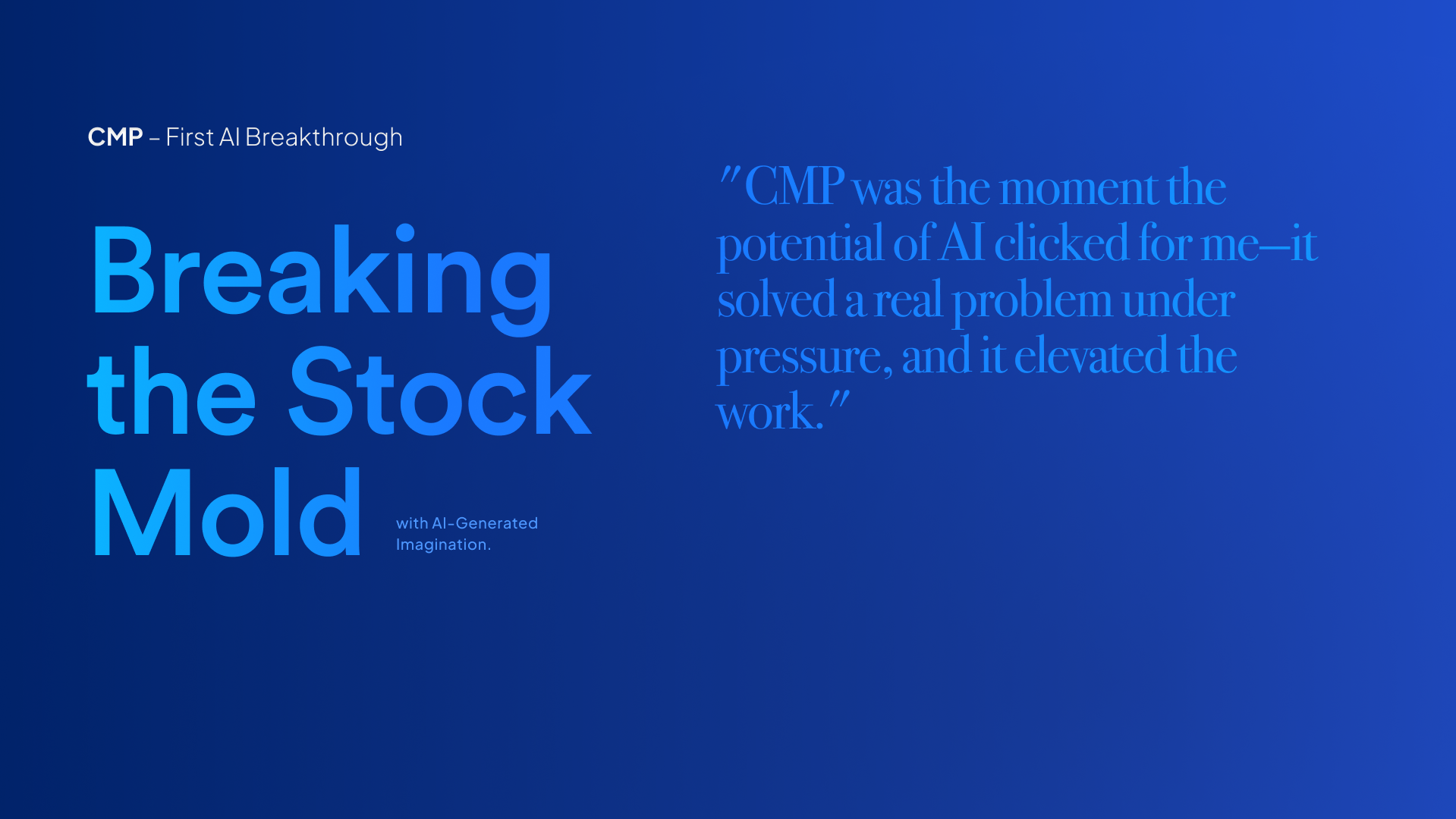 CMP was the first project where AI and brand strategy intersected in real time. Under pressure, it delivered a visual solution that was faster, more original, and emotionally resonant. It showed how, when guided by design principles, AI can help reimagine what brand storytelling looks like in the modern digital landscape.