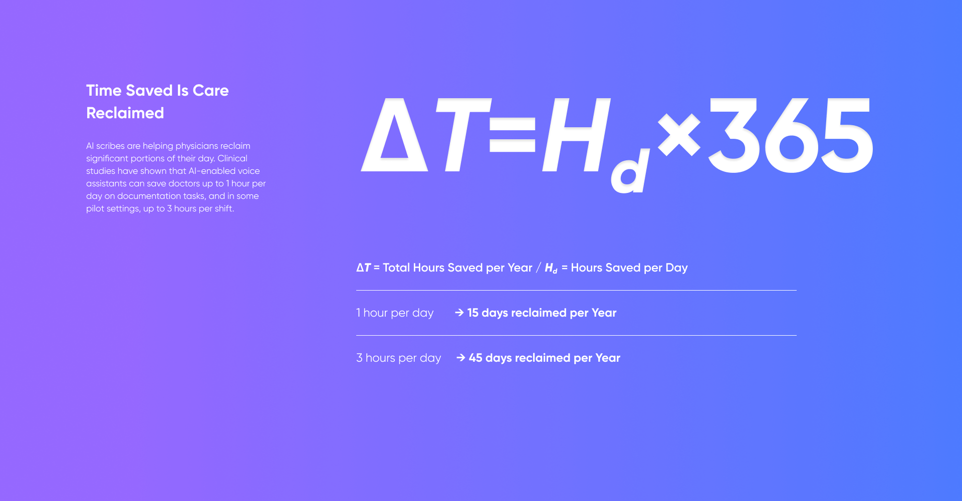 AI-enabled voice assistants are helping physicians worldwide reclaim hours lost to documentation — freeing time for deeper patient care, critical thinking, and personal well-being. Now, you have the opportunity to lead this shift — starting with your practice.